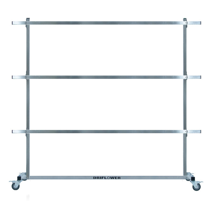The DriFlower Rolling Dri-Rack is designed for professionals who require the utmost flexibility and versatility in their drying space. This drying rack takes things to the next level—three levels of hanging space that securely hold as many hangers as you can fit on a 91in stick… times three! This Rolling Dri-Rack, with its broad base and step-locking castors, can easily roll through doorways and manage the load without compromise.