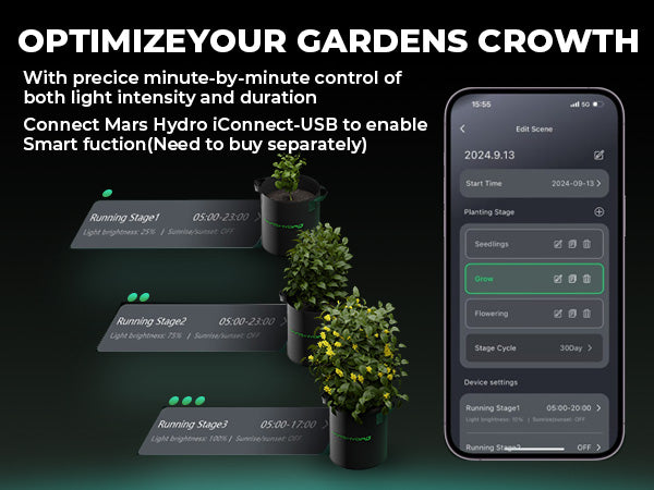 Smart Control Ready: Integrates with the Mars Hydro iConnect Smart Controller for remote app control and custom scheduling.