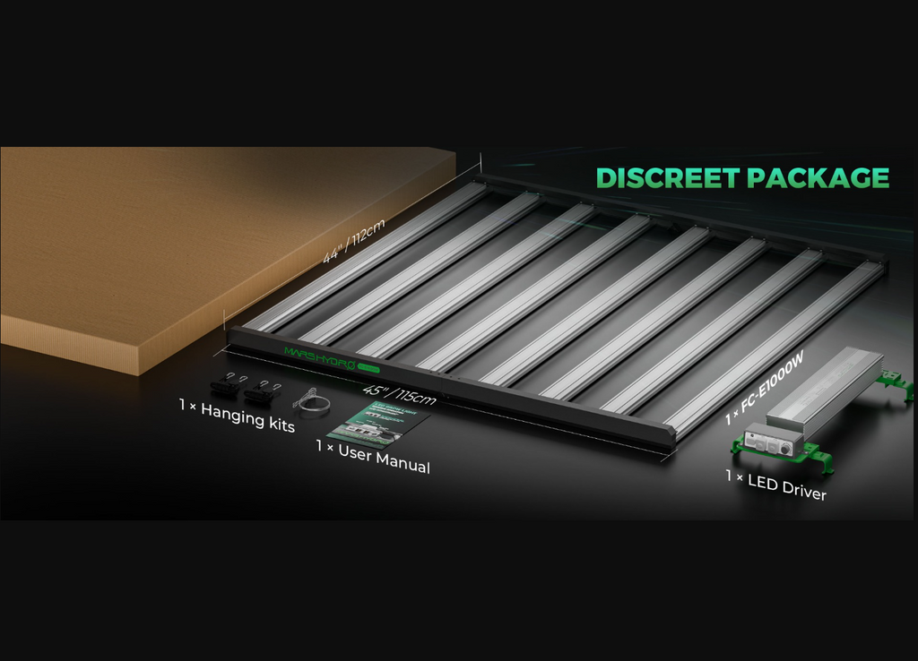 The Mars Hydro FC-E1000W is a commercial-grade, full-spectrum LED grow light engineered for professional and high-yield indoor horticulture across the entire plant growth cycle. It features a bar-style design equipped with high-quality, high-density USA Brand Bridgelux Diodes, ensuring excellent light uniformity and deep canopy penetration across its maximum coverage area of 5' x 5'. Utilizing a specialized "Yield Max" spectrum, this light is designed to maximize plant productivity, achieving a high Max Yield potential of up to 3.0 g/W.