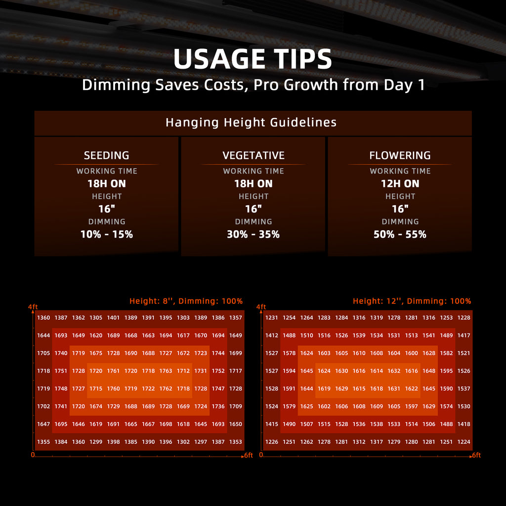 Full Spectrum Lighting: Optimized light spectrum (including 660-665nm, 2800-3200K, and 4800-5000K) to support all growth stages.