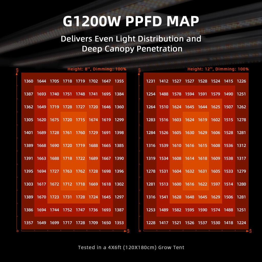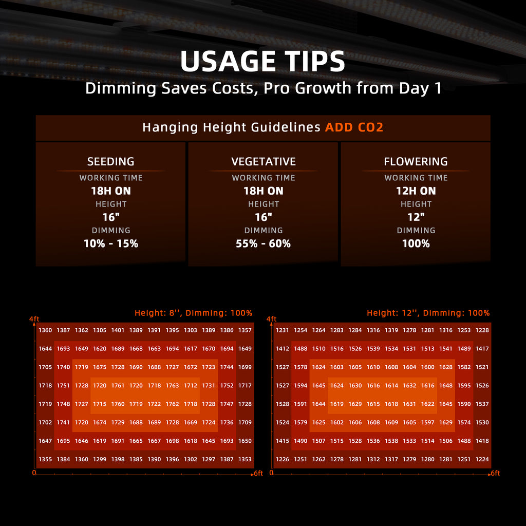 Exceptional Efficacy: Delivers an impressive PPE of 2.9 µmol/J and a total PPF of 3528 µmol/s for high-yield harvests.