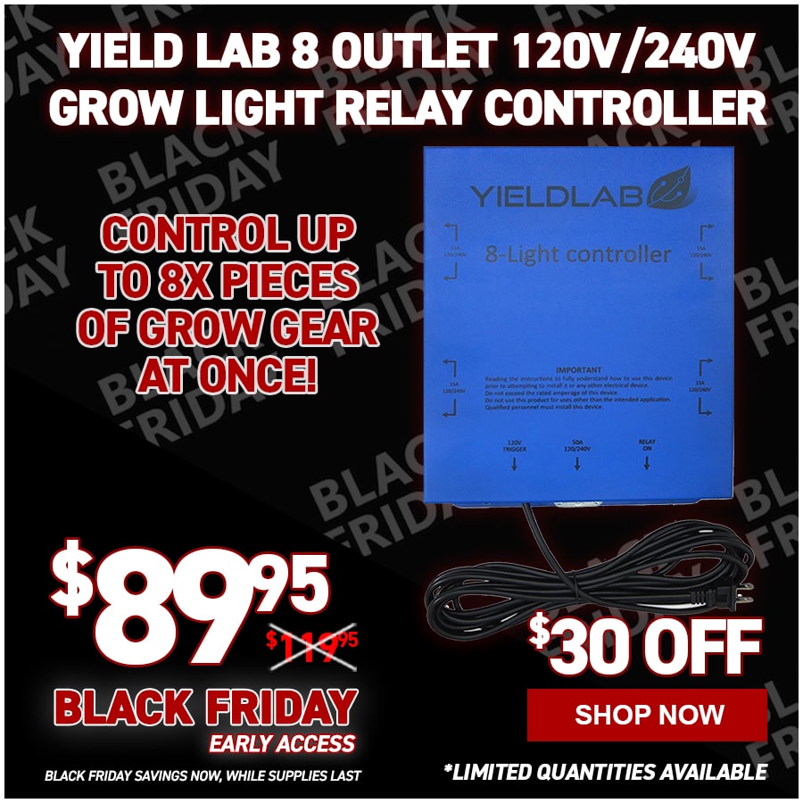That surge protector not doing the job anymore? Let’s face it: if you’re growing lots of plants you need lots of power, a single outlet won’t do. If you’ve got lots of plants to grow but your house or growing space may not be able to handle all of the lights you need to grow them, the Yield Lab 8 Outlet Grow Light Relay Controller is what you need for safe, consistent running grow lights.